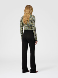 Missoni gets back to the essence, where matter and colour merge. Clothes are the words, but the speeches and stories are of those who wear them. The accent is on outerwear and tailoring: enveloping coats, trench coats, fluid suits, buttonless blazers, loose trousers. Extremes that meet, long tight dresses and liquid ones like caftans, graphic miniskirts and vaporous shirts. A transversal vision, where the sensuality of the body is felt, revealed or barely perceived. Straight-leg long pants Vanise knit Viscose blend with lame threads Ironing maximum temperature 110°C - without steam Dry cleaning in tetrachloroethene - mild process Dry inside out Dry flat Do not tumble dry Iron inside out Iron with a cloth between Do not wash Do not bleach