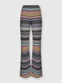 Missoni gets back to the essence, where matter and colour merge. Clothes are the words, but the speeches and stories are of those who wear them. The accent is on outerwear and tailoring: enveloping coats, trench coats, fluid suits, buttonless blazers, loose trousers. Extremes that meet, long tight dresses and liquid ones like caftans, graphic miniskirts and vaporous shirts. A transversal vision, where the sensuality of the body is felt, revealed or barely perceived. Straight-leg long pants Popcorn stitch knit Striped pattern Viscose blend with lame threads Dry cleaning in tetrachloroethene - mild process Ironing maximum temperature 110°C - without steam Steam iron only Dry flat Do not tumble dry Iron inside out Do not wash Do not bleach