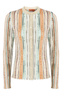 Missoni Striped Lamé Slub Viscose Crewneck Cardigan in Multicoloured at Nordstrom