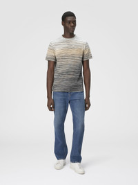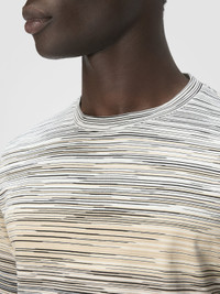 Missoni gets back to the essence, where matter and colour merge. Clothes are the words, but the speeches and stories are of those who wear them. The accent is on outerwear and tailoring: enveloping coats, trench coats, fluid suits, buttonless blazers, loose trousers. Extremes that meet, long tight dresses and liquid ones like caftans, graphic miniskirts and vaporous shirts. A transversal vision, where the sensuality of the body is felt, revealed or barely perceived. T-shirt short sleeve Cotton jersey Faded slub pattern 100% cotton Ironing maximum temperature 110°C - without steam Wash max 30°C - Very mild process Dry cleaning in tetrachloroethene Dry flat Do not tumble dry Do not bleach
