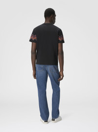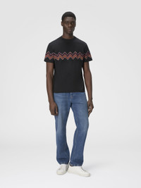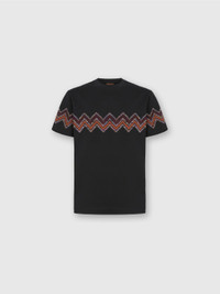 Missoni gets back to the essence, where matter and colour merge. Clothes are the words, but the speeches and stories are of those who wear them. The accent is on outerwear and tailoring: enveloping coats, trench coats, fluid suits, buttonless blazers, loose trousers. Extremes that meet, long tight dresses and liquid ones like caftans, graphic miniskirts and vaporous shirts. A transversal vision, where the sensuality of the body is felt, revealed or barely perceived. T-shirt short sleeve Regular fit 100% cotton Cotton jersey Maxi chevron slub intarsia Ironing maximum temperature 110°C - without steam Wash max 30°C - Mild process Dry cleaning in tetrachloroethene Do not tumble dry Do not bleach