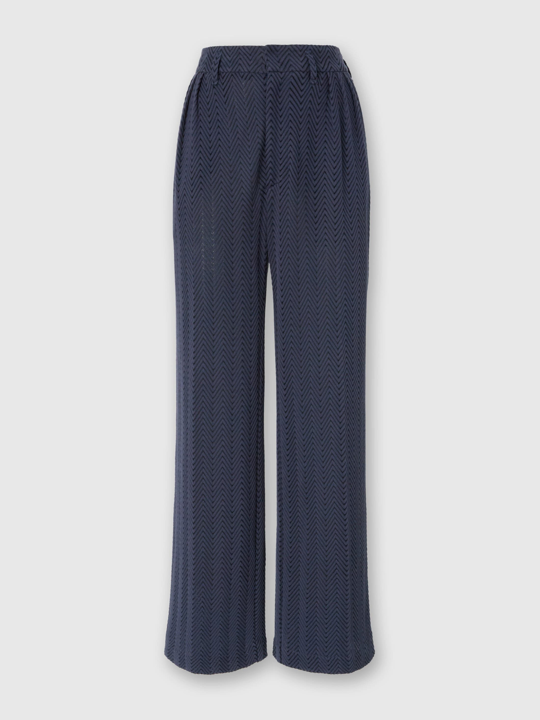 Missoni gets back to the essence, where matter and colour merge. Clothes are the words, but the speeches and stories are of those who wear them. The accent is on outerwear and tailoring: enveloping coats, trench coats, fluid suits, buttonless blazers, loose trousers. Extremes that meet, long tight dresses and liquid ones like caftans, graphic miniskirts and vaporous shirts. A transversal vision, where the sensuality of the body is felt, revealed or barely perceived. Tailored pants Raschel zig zag knit Cotton blend Wash max 30°C Dry cleaning in tetrachloroethene - mild process Steam iron only Do not tumble dry Dry flat Do not iron Do not bleach