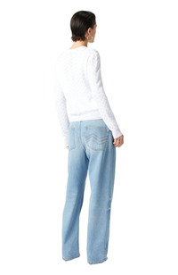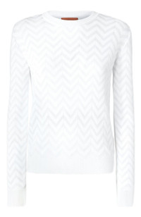 Contemporary sleekness and liberated sensuality imbue the Missoni Fall 2024 collection. Offsetting the masculine and the feminine, swinging between the slouchy and the skintight, the collection features pieces that build an ongoing Missoni wardrobe: long and short dresses, skimpy maxi-cardigans and blouson cardigans meant as outerwear; playful faux fur coats and pencil coats with faux fur oversized collars and trims; fluid pantsuits; jumpsuits and tops. Tonal chevron pattern Classic Crew Neck Comfortable fit Dry cleaning in tetrachloroethene - mild process Ironing maximum temperature 110°C - without steam Do not tumble dry Dry flat Iron inside out Dry inside out Do not wash Do not bleach