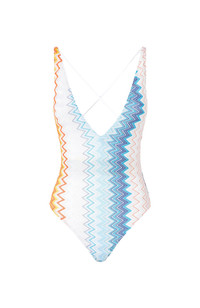 V-neck viscose blend zigzag lamé one-piece swimsuit