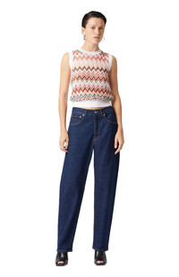 Contemporary sleekness and liberated sensuality imbue the Missoni Fall 2024 collection. Offsetting the masculine and the feminine, swinging between the slouchy and the skintight, the collection features pieces that build an ongoing Missoni wardrobe: long and short dresses, skimpy maxi-cardigans and blouson cardigans meant as outerwear; playful faux fur coats and pencil coats with faux fur oversized collars and trims; fluid pantsuits; jumpsuits and tops. Viscose Blend Chevron Insert V-Neck Contemporary Line Dry cleaning in tetrachloroethene - mild process Dry inside out Do not tumble dry Dry flat Do not iron Do not wash Do not bleach