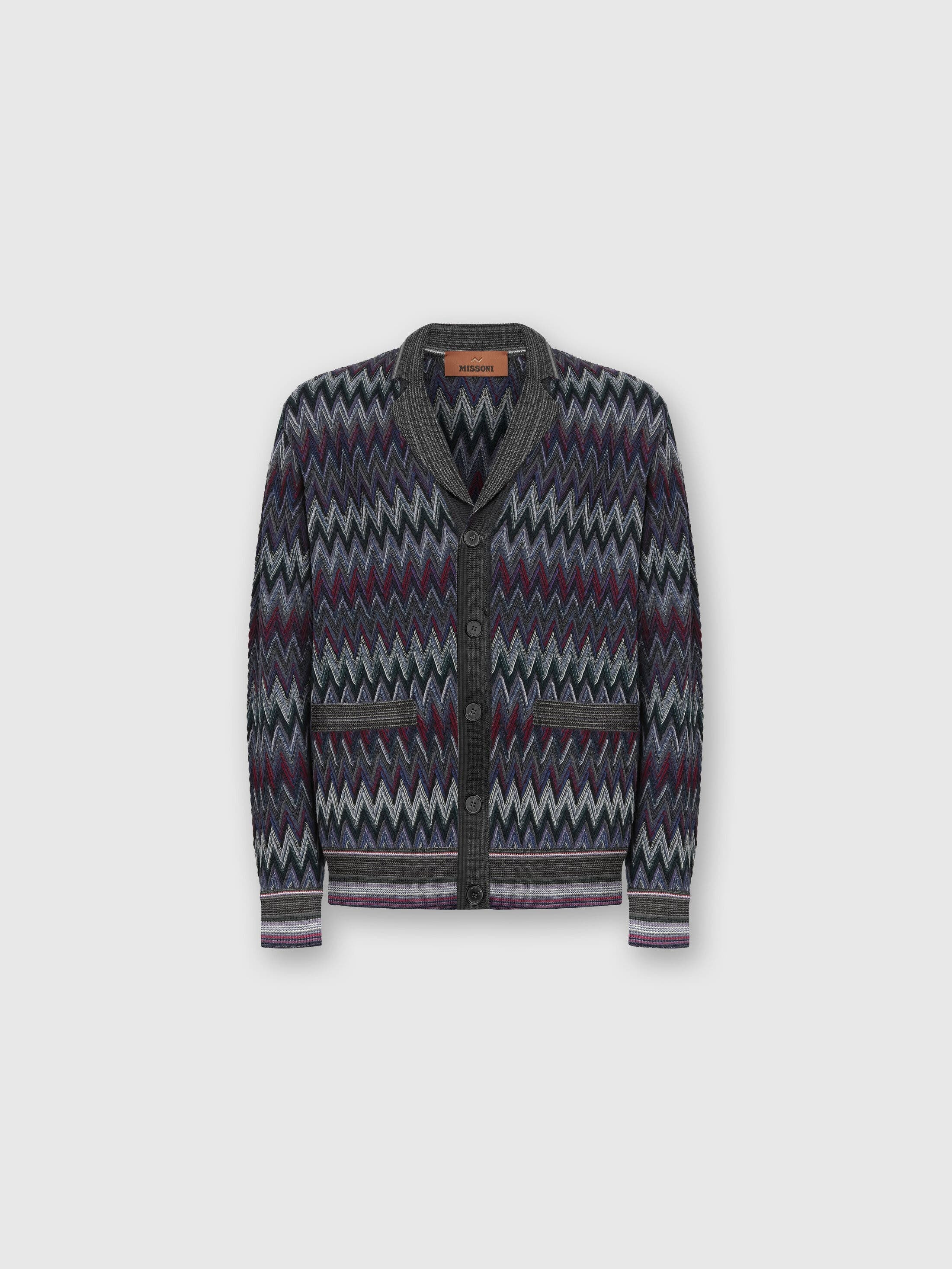 Missoni gets back to the essence, where matter and colour merge. Clothes are the words, but the speeches and stories are of those who wear them. The accent is on outerwear and tailoring: enveloping coats, trench coats, fluid suits, buttonless blazers, loose trousers. Extremes that meet, long tight dresses and liquid ones like caftans, graphic miniskirts and vaporous shirts. A transversal vision, where the sensuality of the body is felt, revealed or barely perceived. Cardigan with buttons Raschel knit 3D zigzag pattern 100% wool Ironing maximum temperature 110°C - without steam Hand wash Dry cleaning in tetrachloroethene - mild process Do not tumble dry Cool Hand Wash Do not bleach