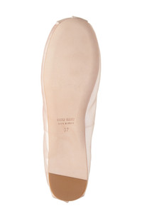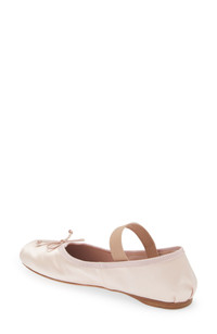 A logo-branded strap secures this Italian-crafted flat that features a silk-softened upper complete with a dainty bow. Elasticized mary jane strap Leather and textile upper and lining/leather sole Made in Italy Designer Shoes