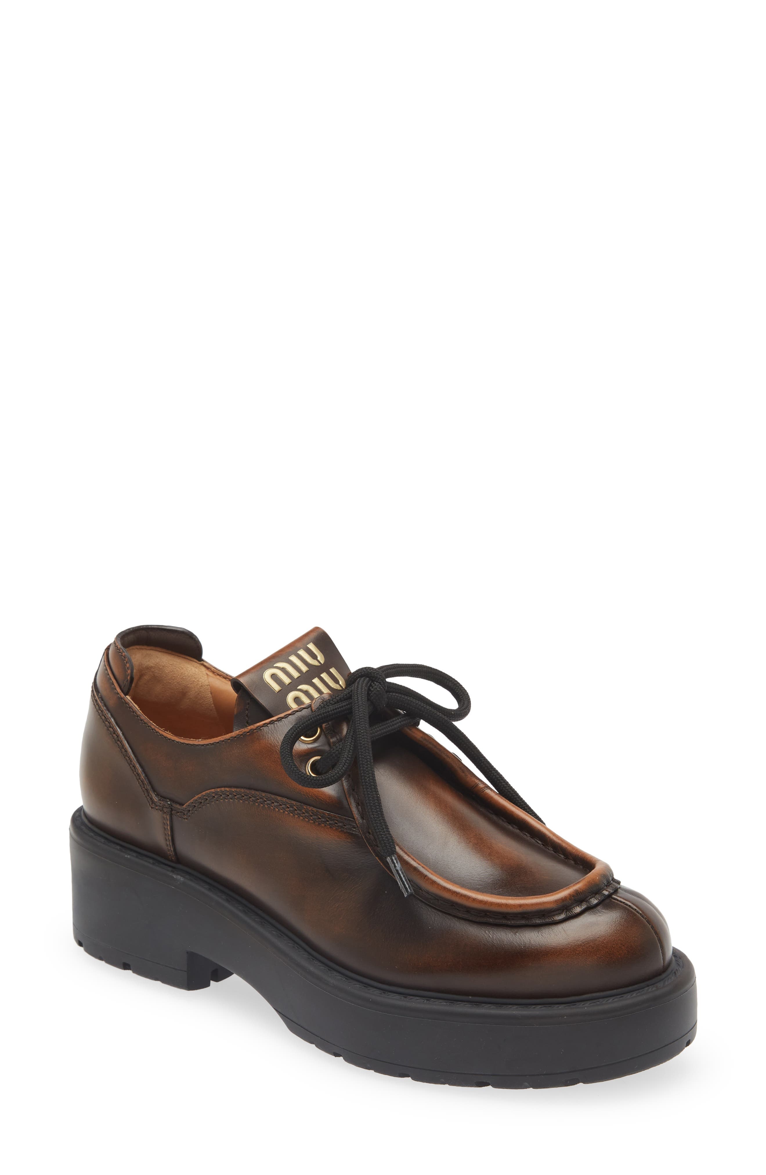 Miu Miu Boyfriend Lu Platform Derby in Brown at Nordstrom