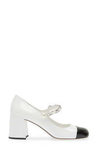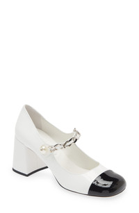 Miu Miu Chain Strap Mary Jane Pump in White/Black at Nordstrom