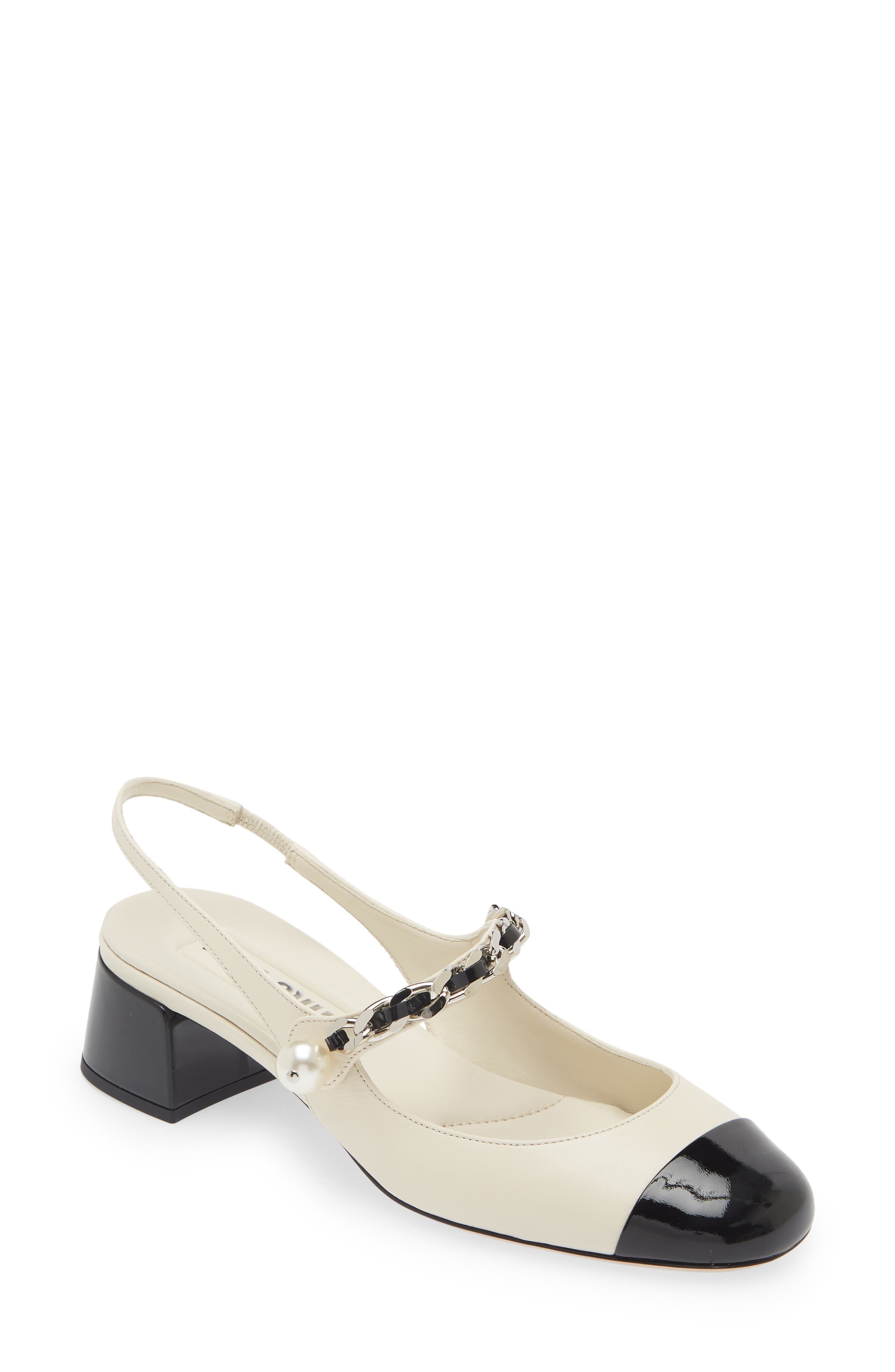 Miu Miu Chain Strap Slingback Cap Toe Pump in Avorio/Nero at Nordstrom