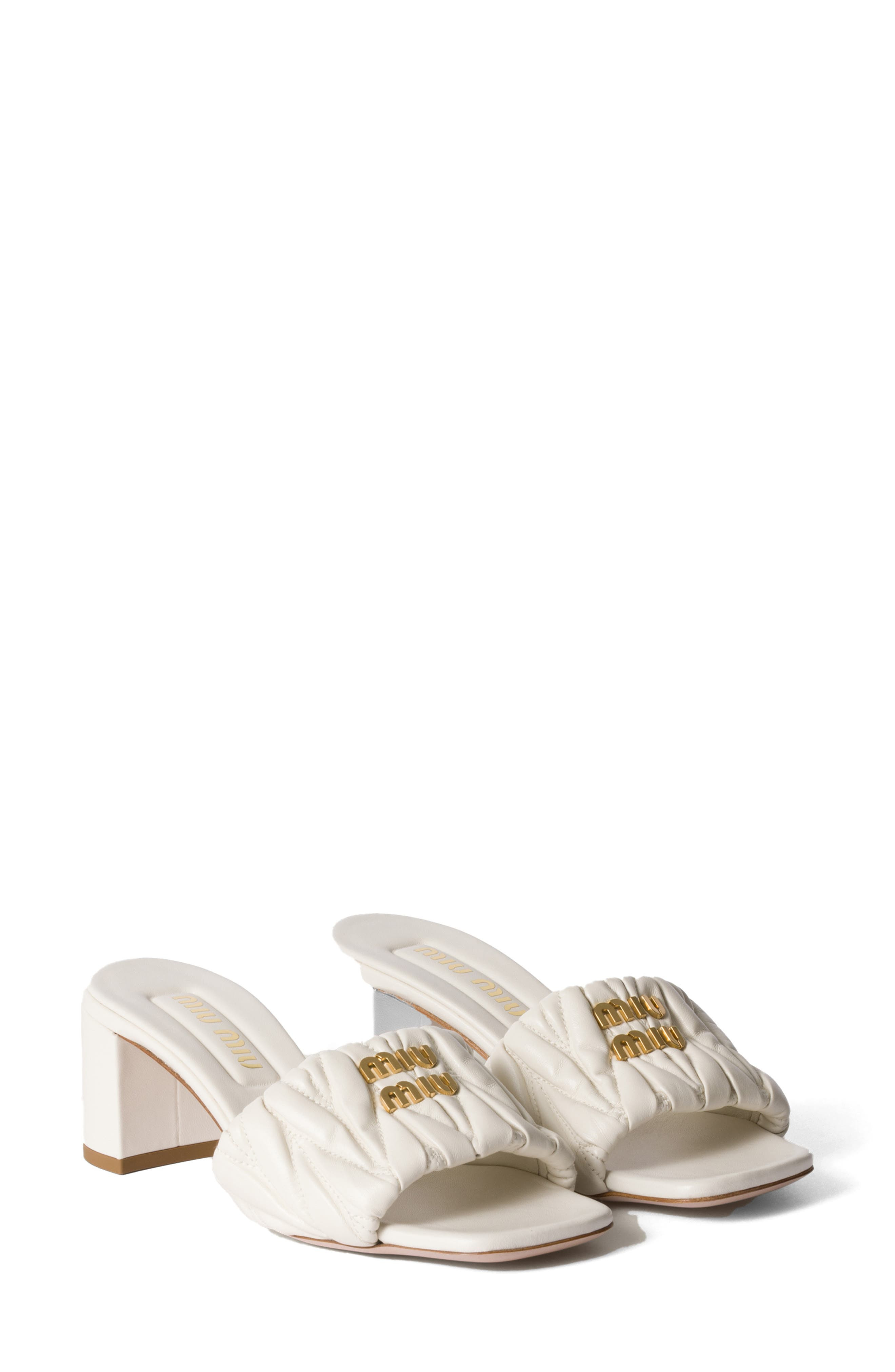 Miu Miu Matelassé Block Heel Slide Sandal in Bianco at Nordstrom