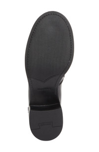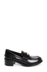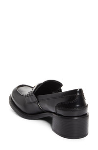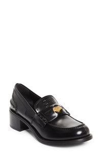 A stacked heel and penny strap ground this leather loafer in a heritage feel, while logo embossing provides modern iconicity. 1 3/4" (90mm) heel Leather upper and lining/rubber sole Made in Italy Designer Shoes