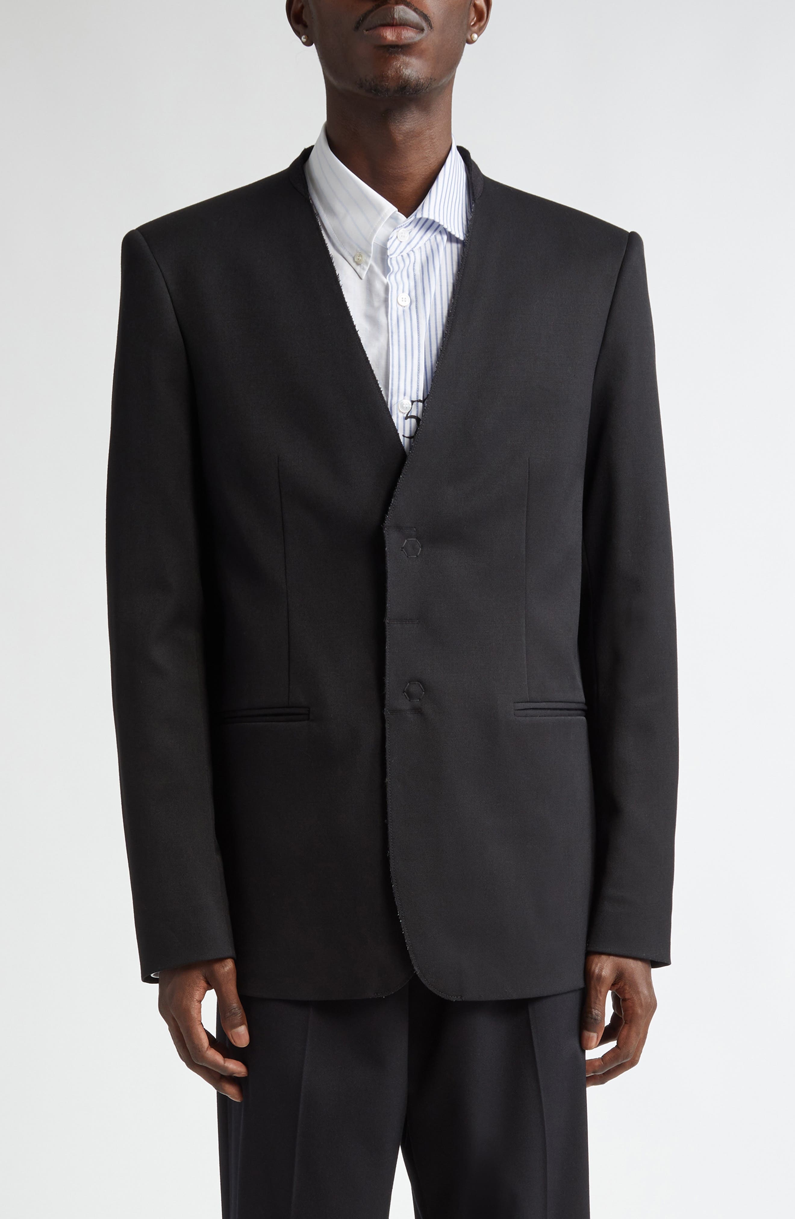 MM6 Maison Margiela Collarless Raw Edge Suit Jacket in Black at Nordstrom