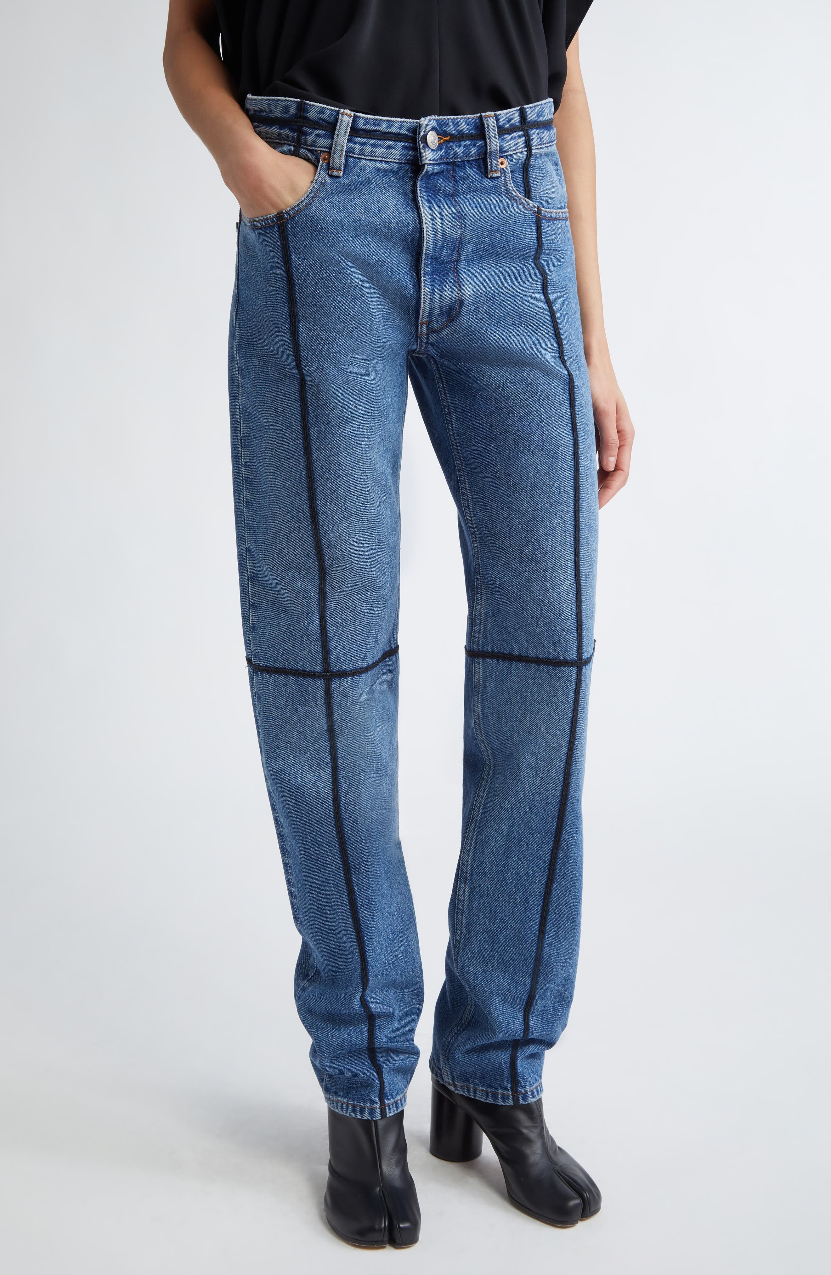MM6 Maison Margiela Contrast Seam Straight Leg Jeans in Medium Blue at Nordstrom