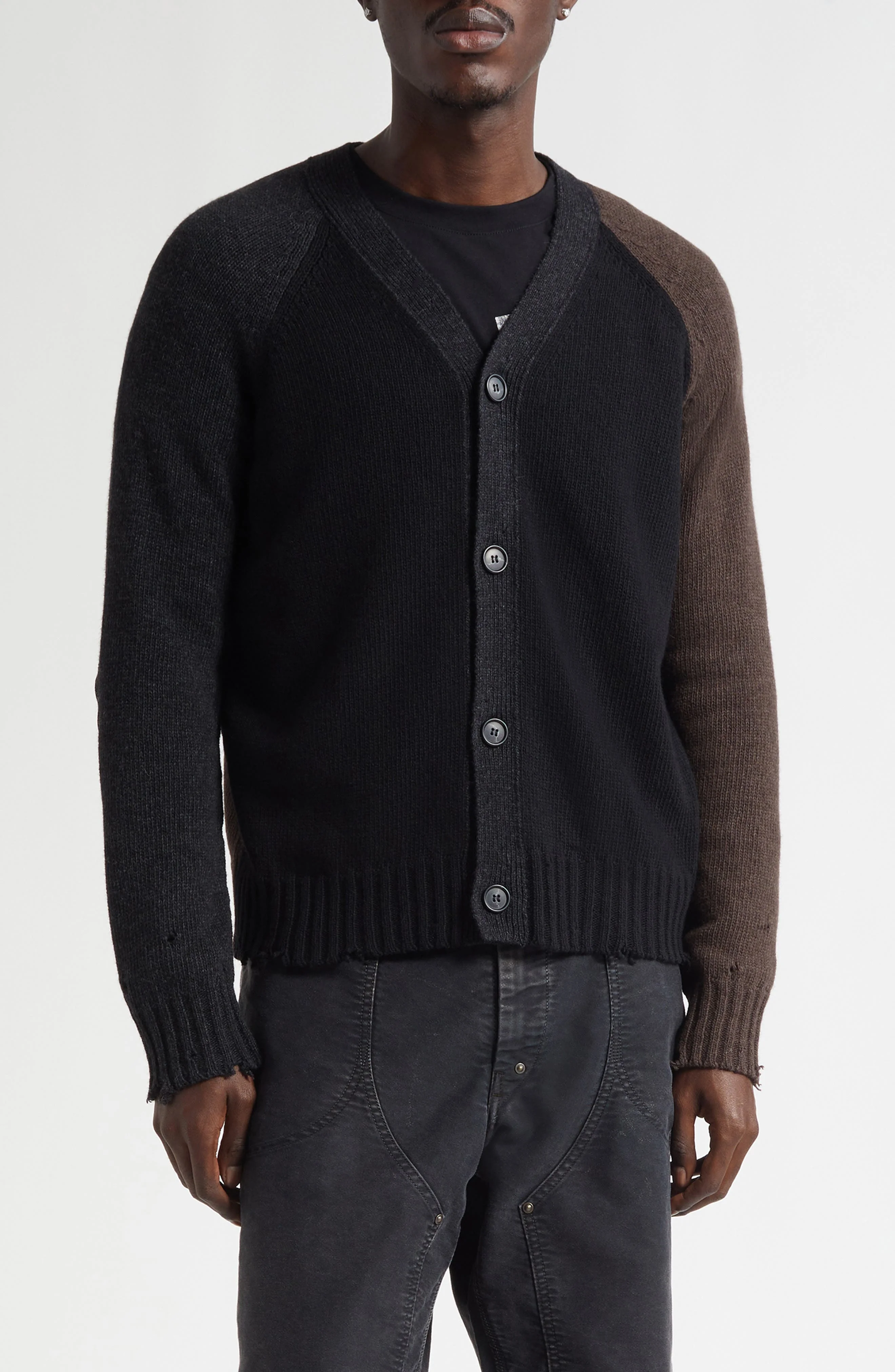 MM6 Maison Margiela Distressed Wool Blend Cardigan in Color Block at Nordstrom