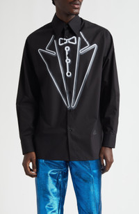 MM6 Maison Margiela Glow in the Dark Tuxedo Graphic Cotton Poplin Button-Up Shirt in Black at Nordst