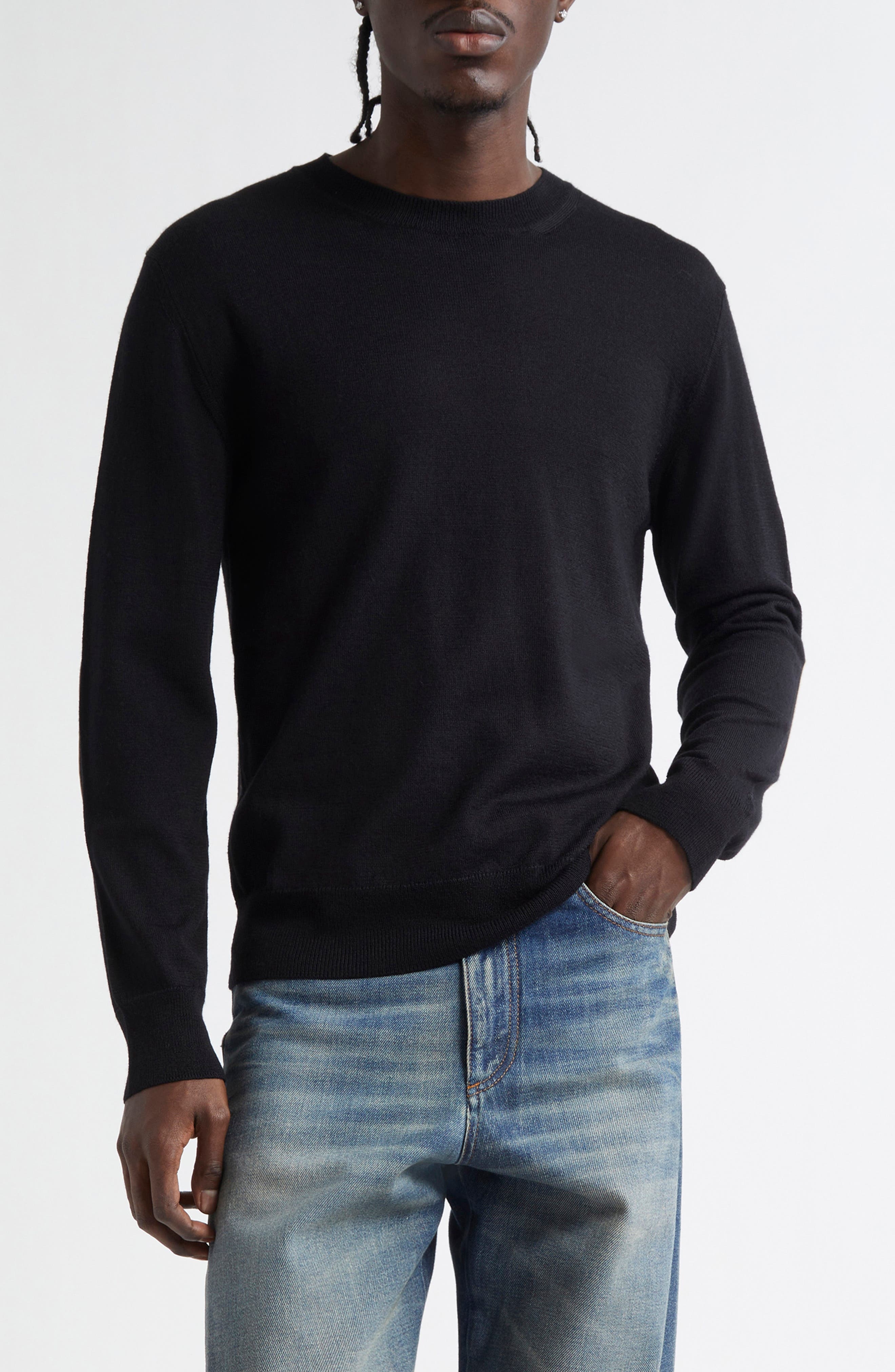 MM6 Maison Margiela Leather Elbow Patch Crewneck Sweater in Black at Nordstrom