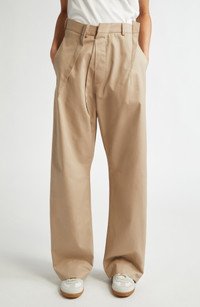 MM6 Maison Margiela Pleated Cotton Gabardine Straight Leg Pants in Sand at Nordstrom