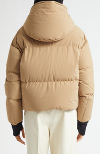 The haute-mountaineering label brings forth another peak layering staple with this down-insulated puffer made with stretchy, close-fitting accents at the cuffs and hem designed to lock in warmth. Two-way front-zip closure Drawstring hood Thumbhole cuffs Front zip pockets Lined, with 90% down, 10% feather fill 84% polyamide, 16% elastane Dry clean Imported Designer Clothing