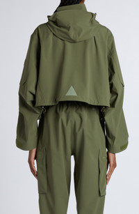 Designed for active lifestyles, this jacket is crafted in a cropped silhouette from stretch fabric that's water-repellent and windproof but still breathable. A removable hood adds an extra level of protection. Front zip closure Stand collar; removable drawcord-toggle hood Adjustable hook-and-loop cuffs Chest zip pockets; sleeve zip pockets 81% polyamide, 19% elastane Dry clean Imported Designer Clothing