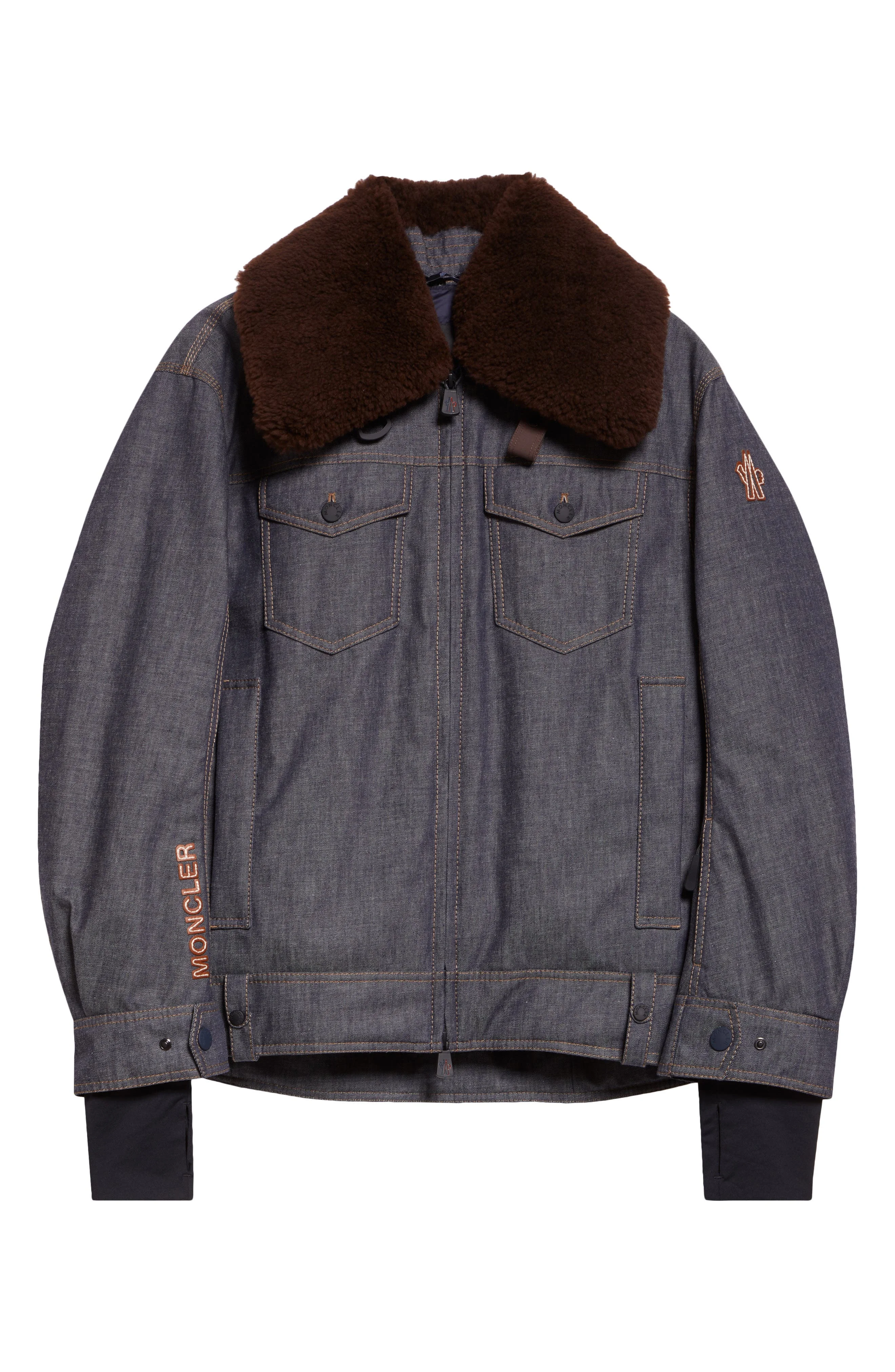 Moncler Grenoble Yunque Denim Down Trucker Jacket with Genuine Shearling Collar in Blue at Nordstrom