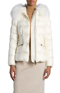 Moncler Boed Down Puffer Jacket with Genuine Shearling Trim in White at Nordstrom