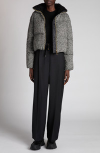 The label known for its haute-mountaineering aesthetics elevates your peak-ready ensembles with this down-insulated puffer updated in wool-forward tweed. Plush faux shearling at the stand collar adds a cozy flourish. Two-way front-zip closure Stand collar On-seam zip pockets Lined, with 90% down, 10% feather fill 58% wool, 24% polyamide, 18% lyocell with 100% polyester faux-shearling trim Dry clean Imported Designer Clothing