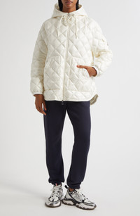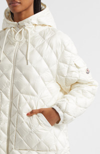 Moncler Diamond Quilted Down Hooded Jacket in Silk White at Nordstrom