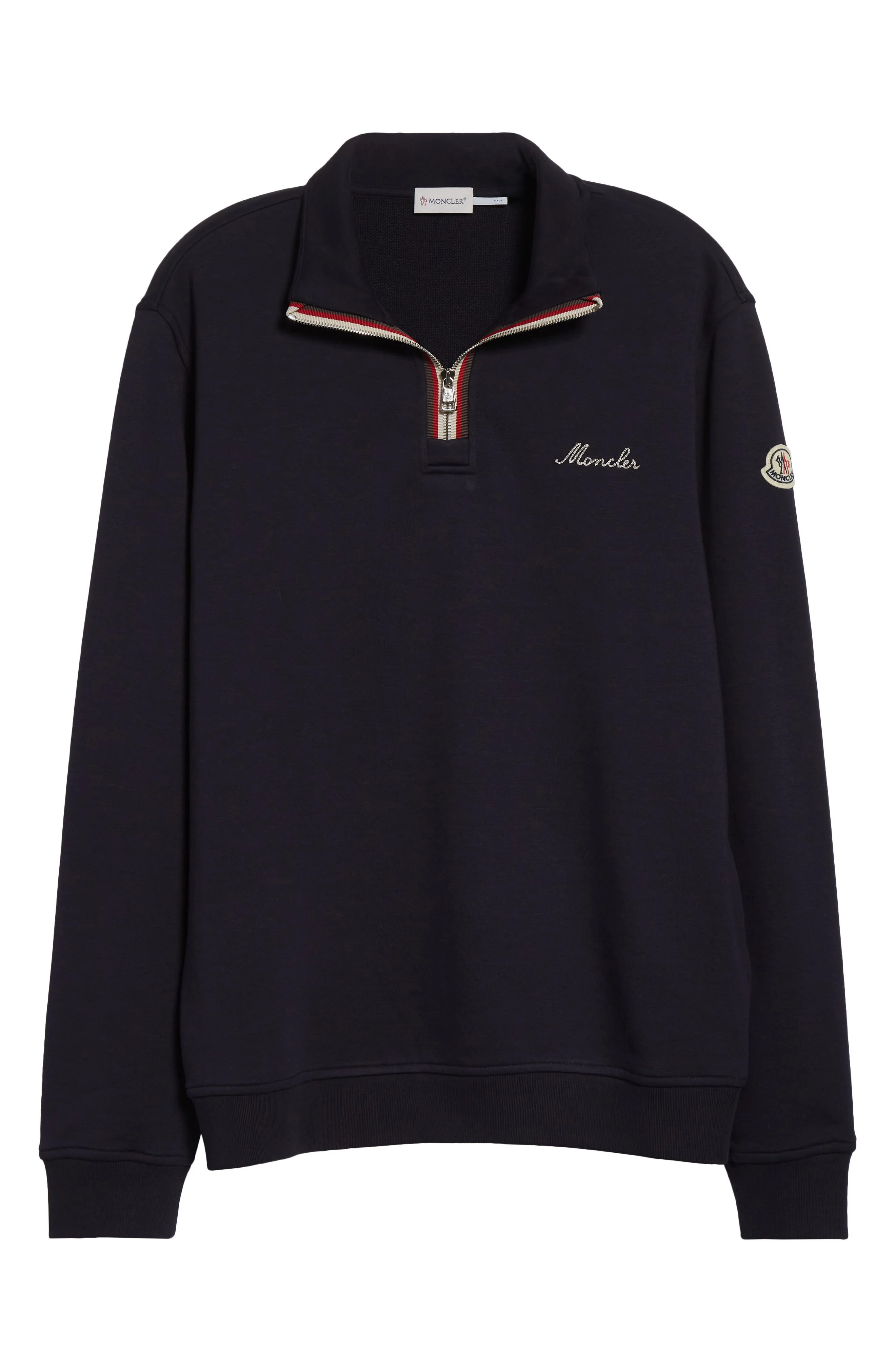 Moncler Embroidered Logo Patch Fleece Quarter Zip Sweatshirt in Navy Blue at Nordstrom