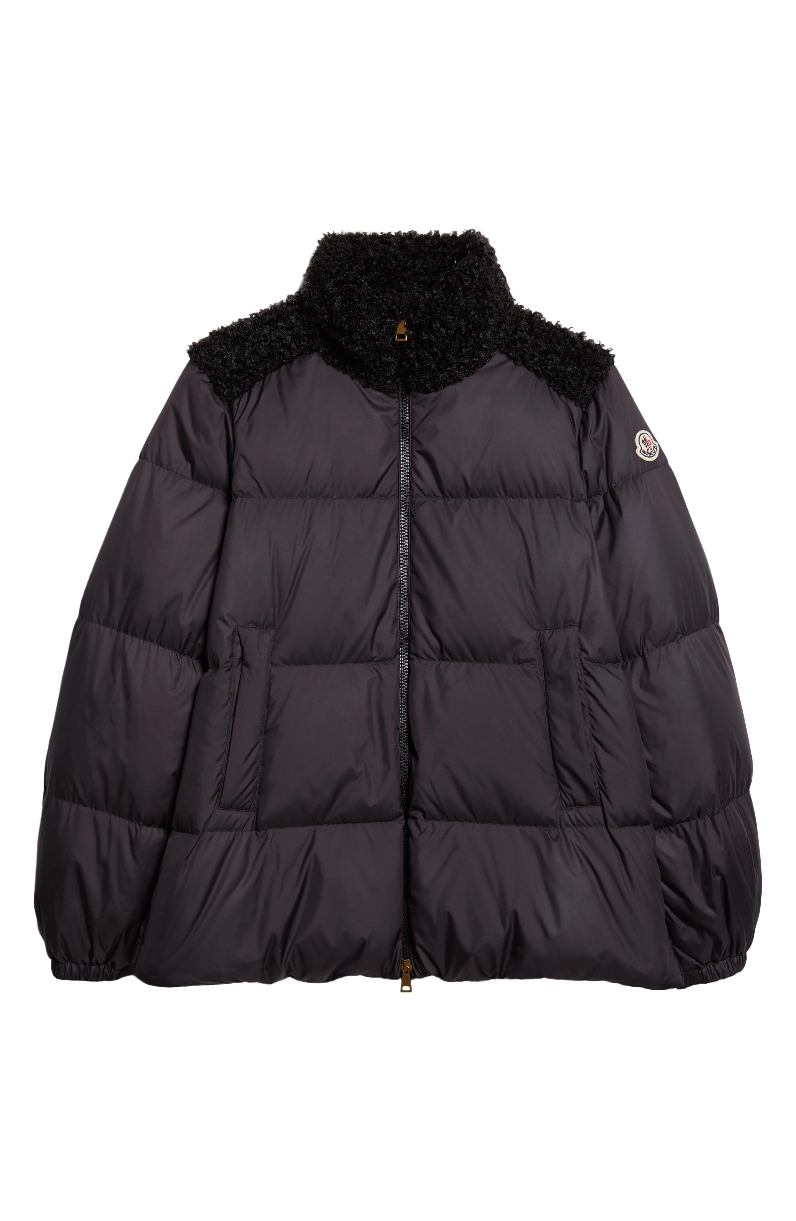Moncler Esnaie Faux Shearling Trim Down Jacket in Black at Nordstrom