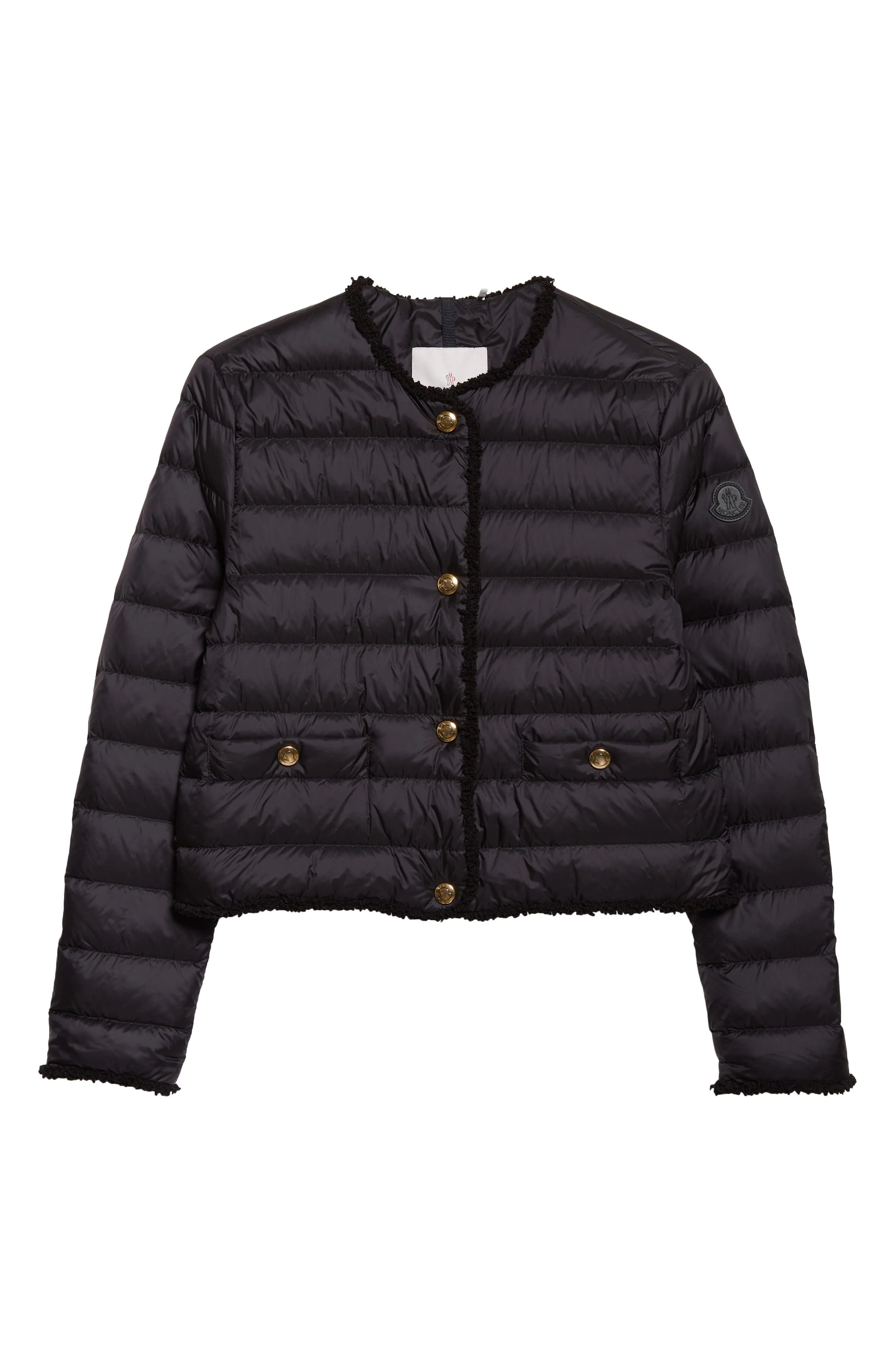 The haute-mountaineering label breathes fresh life into the classic puffer jacket with this boxy, cropped version insulated with plush down and traced with nubby yarn trim. Front snap closure Crewneck Front snap-patch pockets Lined, with 90% down, 10% feather fill 100% nylon Dry clean Imported Designer Clothing