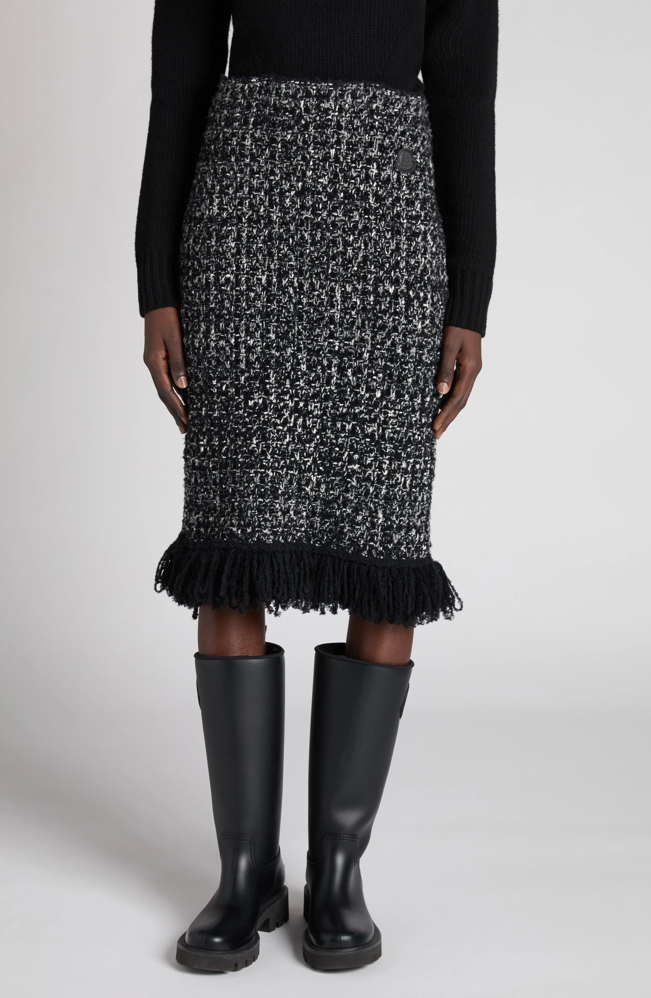 Moncler Fringe Trim Bouclé Knit Skirt in Black/White at Nordstrom