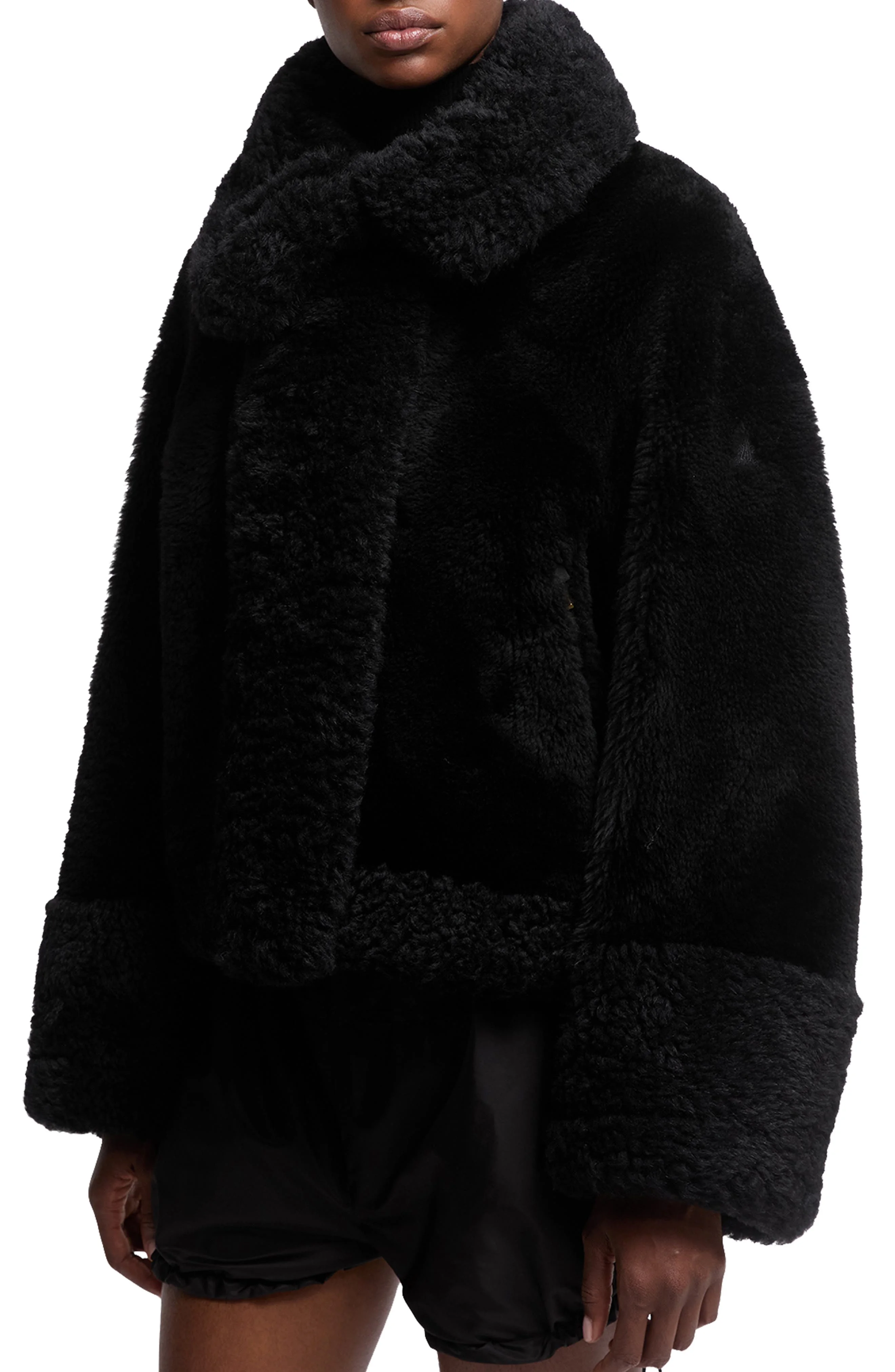 Moncler Gobain Mixed Media Genuine Shearling Jacket in Black at Nordstrom