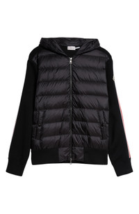 Moncler Hybrid Down & Wool Full Zip Hoodie in Black at Nordstrom