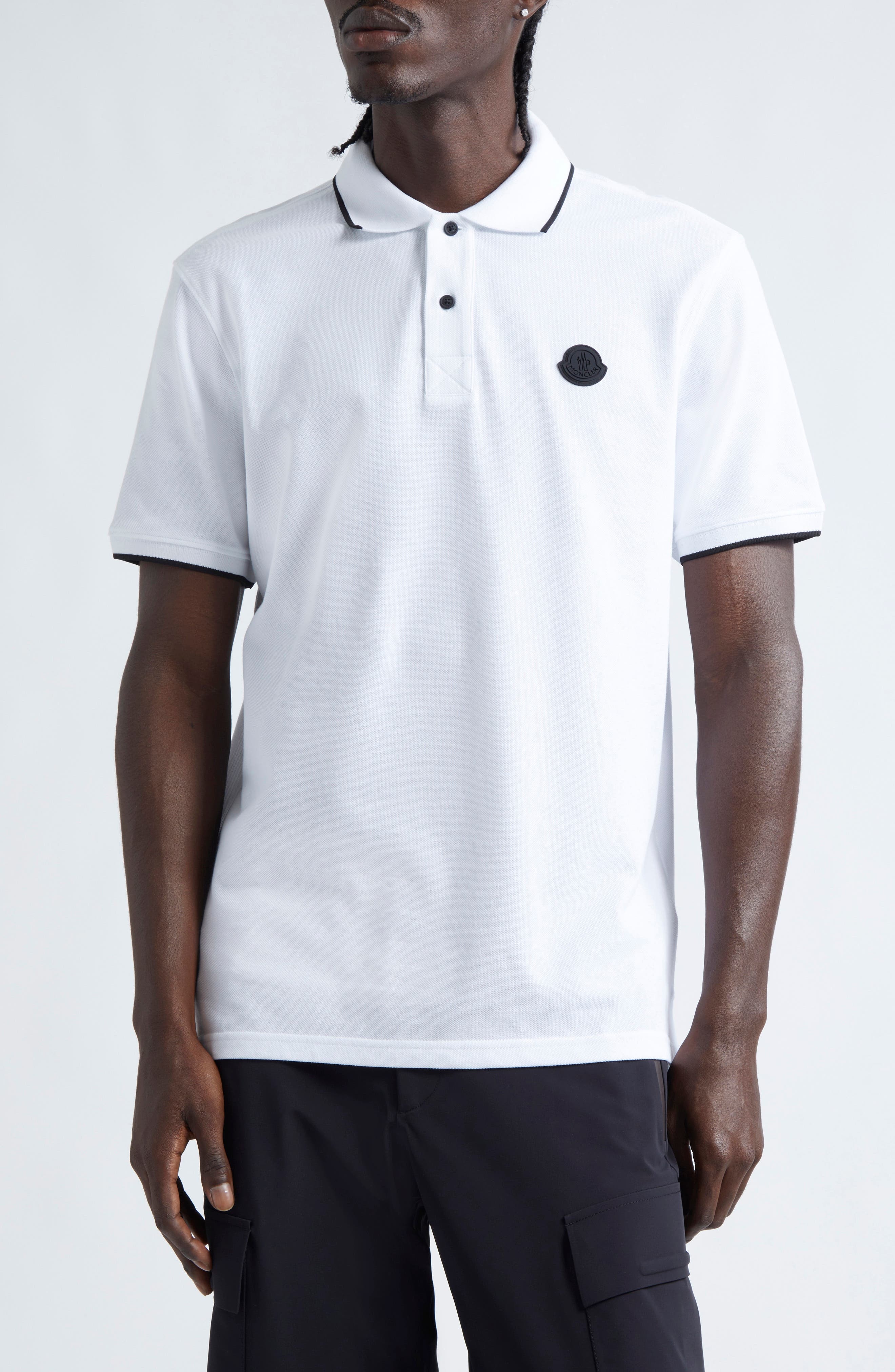 Moncler Logo Cotton Polo in White at Nordstrom