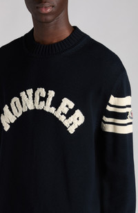 Moncler Logo Embellished Cotton Sweater in Obsidian Blue at Nordstrom