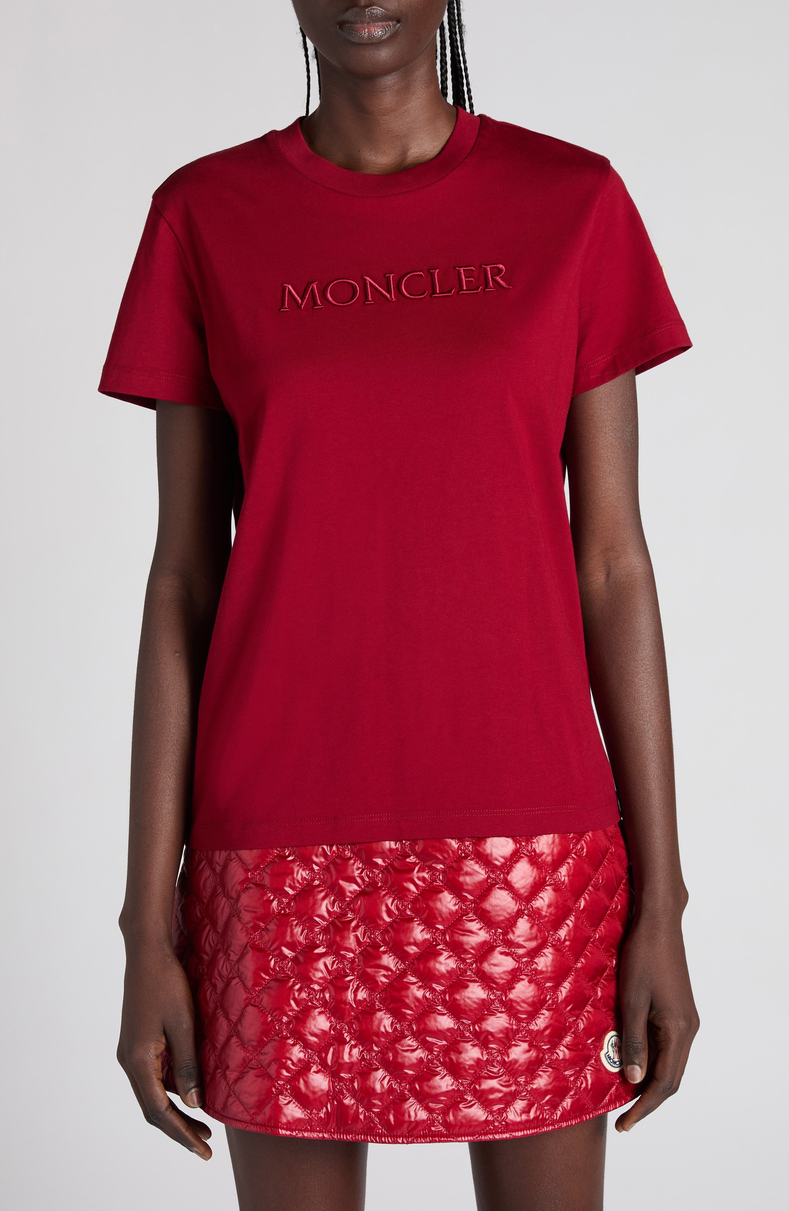 Moncler Logo Embroidered Cotton T-Shirt in Antique Burgundy at Nordstrom