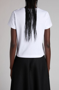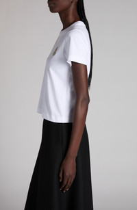 An archival logo blossoms at the chest of this crewneck T-shirt cut from soft, breathable cotton. Crewneck Short sleeves 100% cotton Dry clean or machine wash, dry flat Imported Designer Clothing