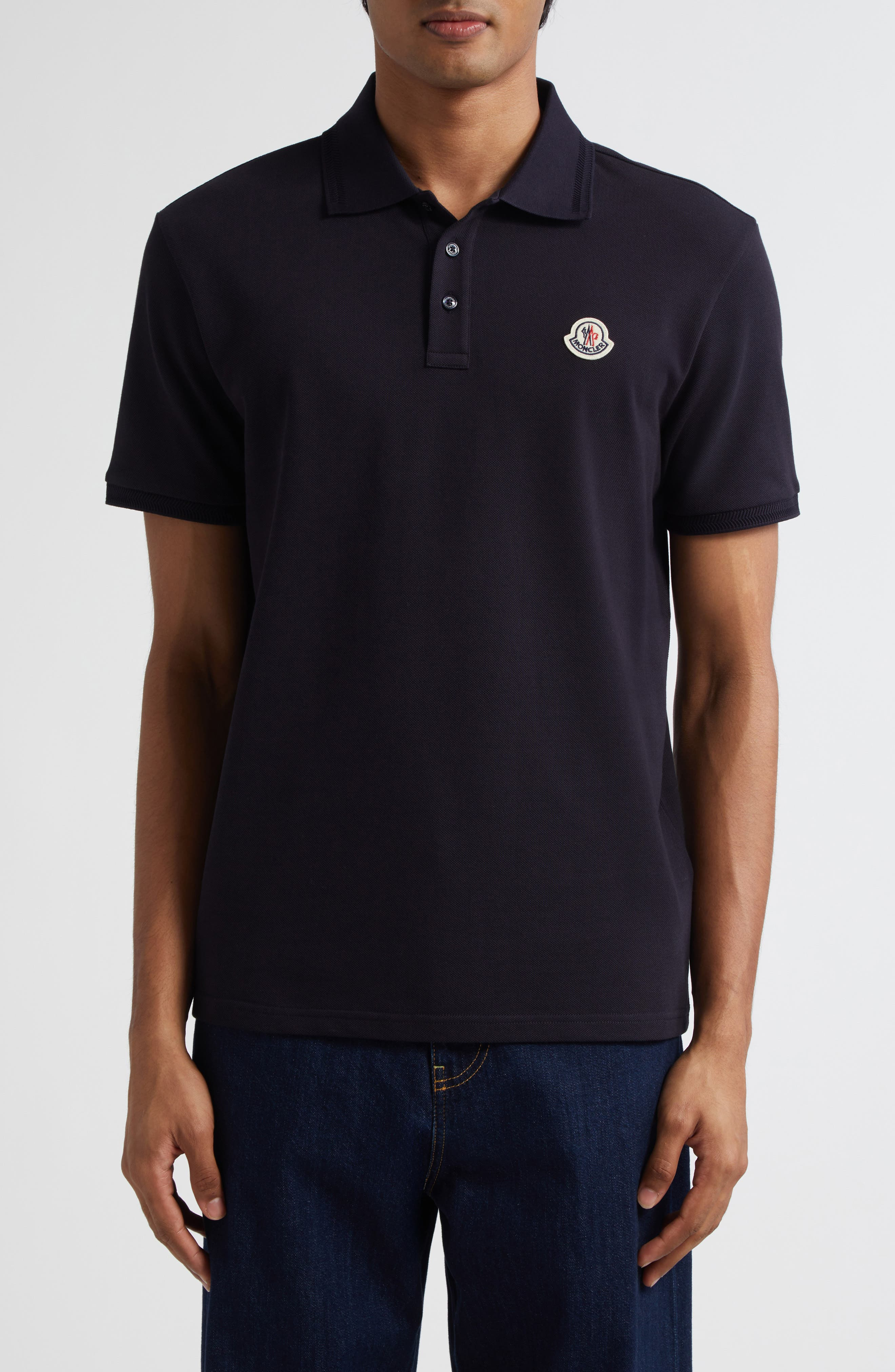 Moncler Logo Patch Cotton Piqué Polo in Blue at Nordstrom