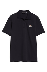 Soft cotton pique offers breathable comfort in this trim polo branded with Moncler's twin-peaked cockerel patch—a nod to the brand's sporty, adventure-driven aesthetic. Button half placket Rib collar Short sleeves 100% cotton Dry clean or machine wash, dry flat Imported Designer Clothing