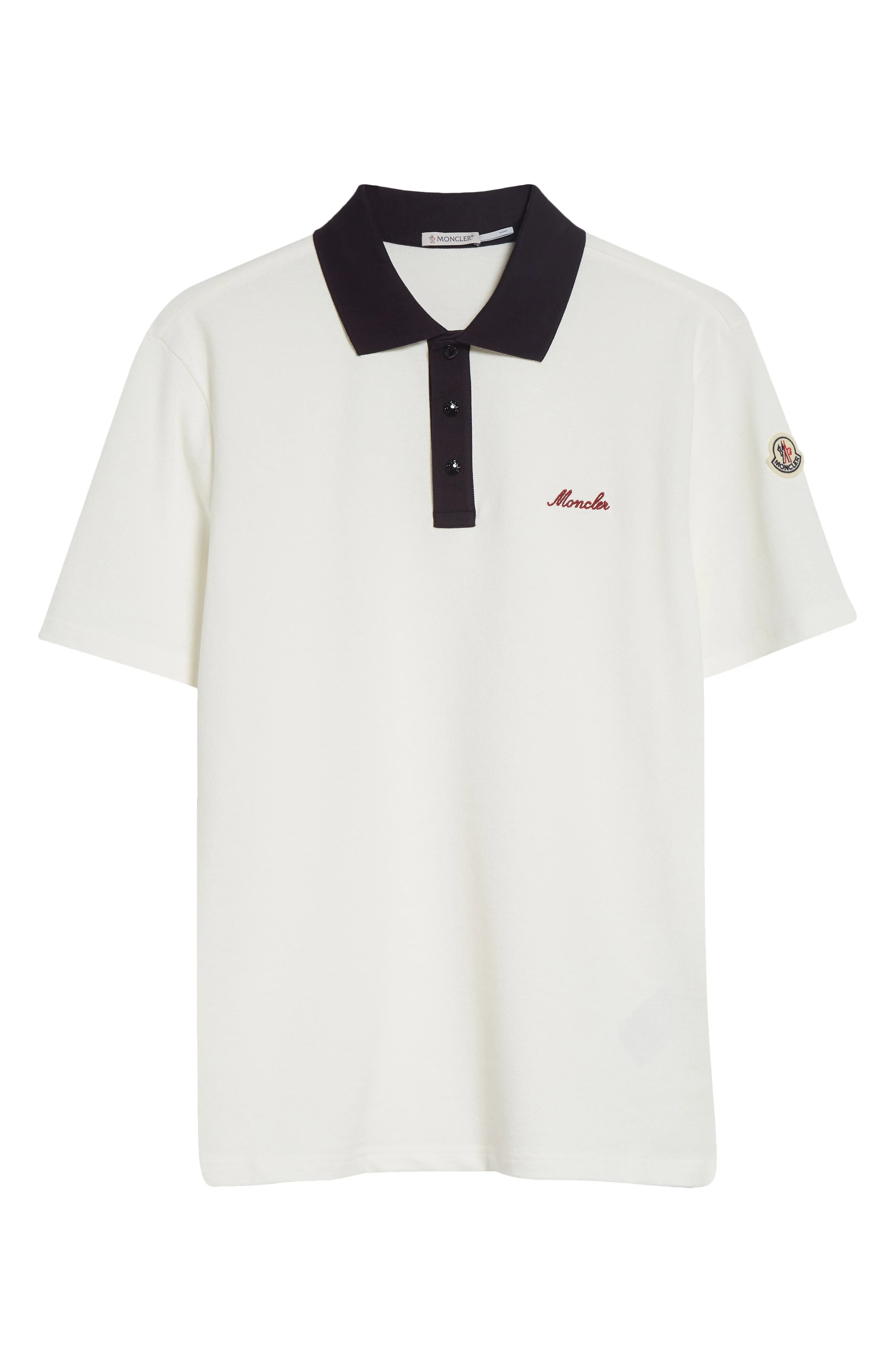 Moncler Logo Patch Cotton Piqué Polo in Silk White at Nordstrom