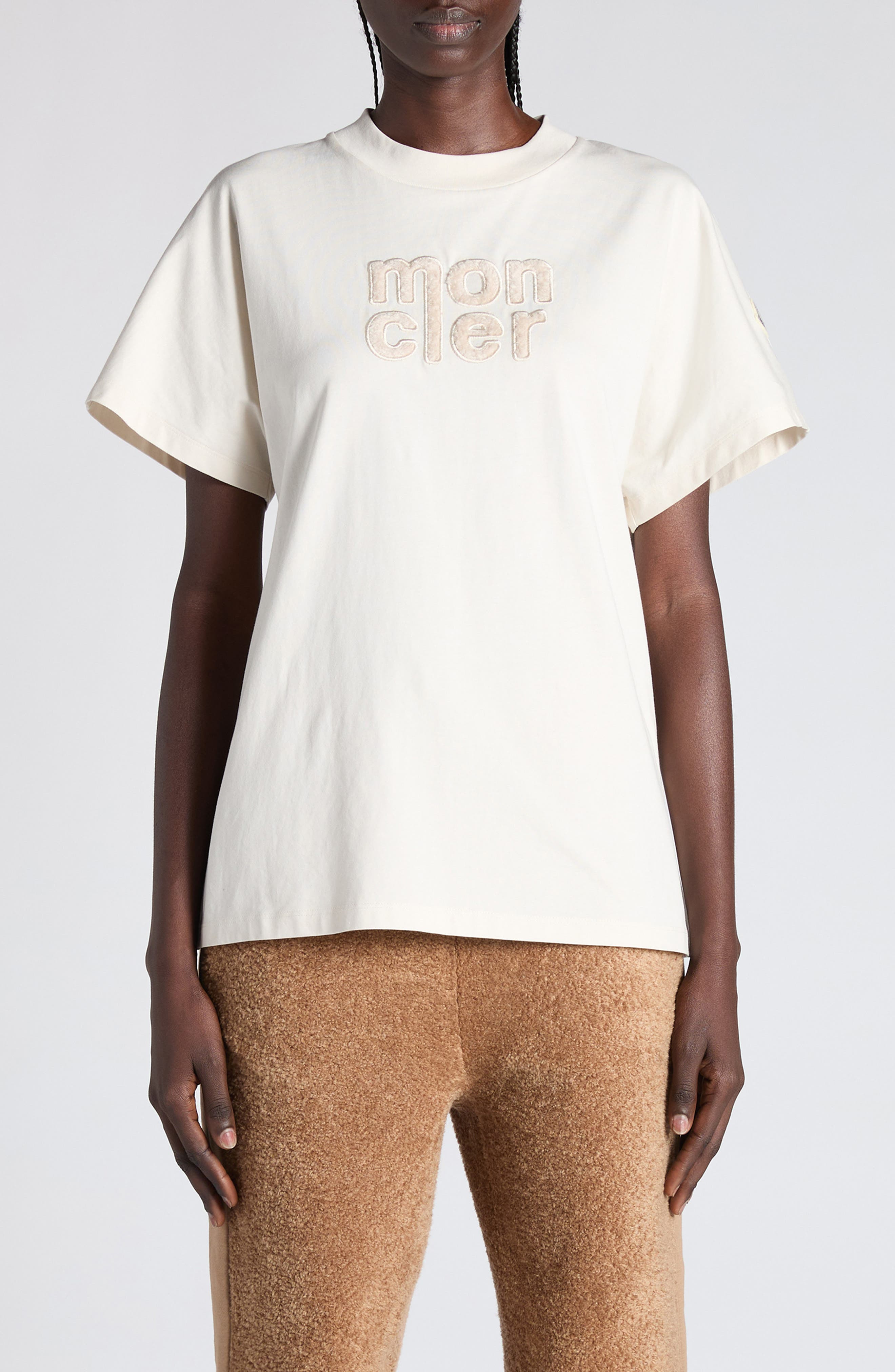Moncler Logo Patch Cotton T-Shirt in White Alyssum at Nordstrom