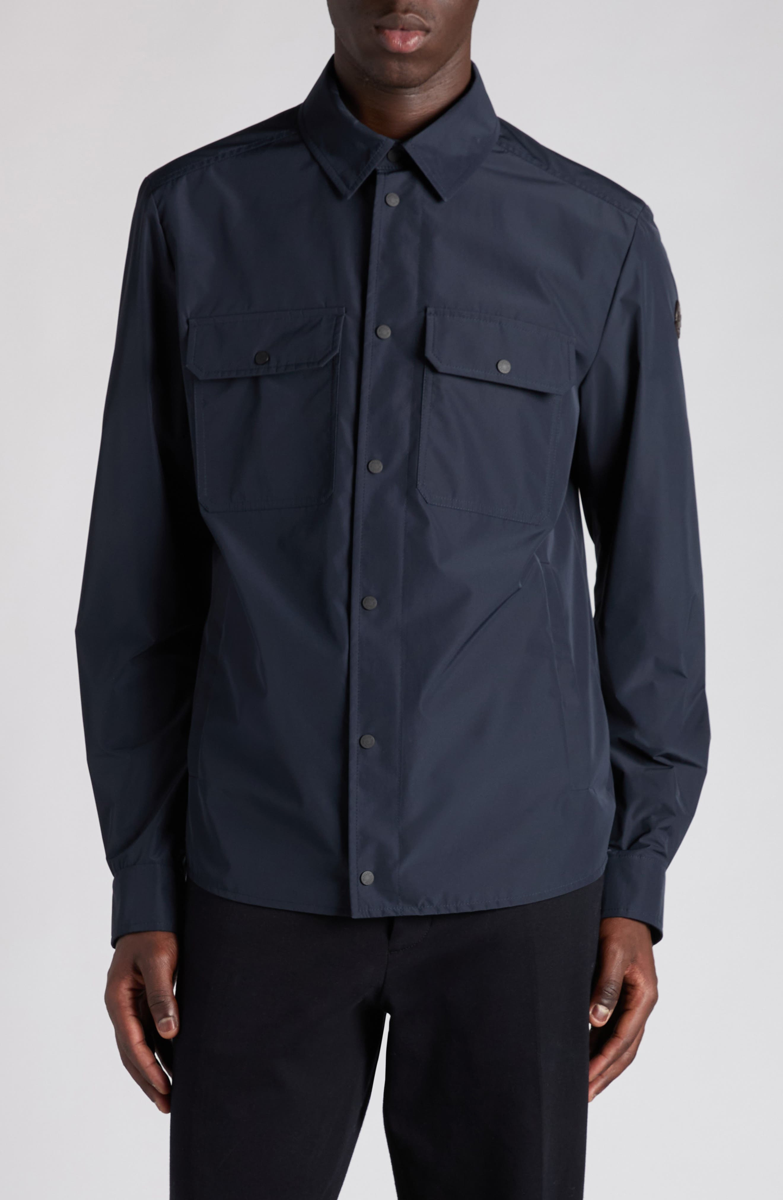 Moncler Logo Patch Overshirt in Navy Blue at Nordstrom