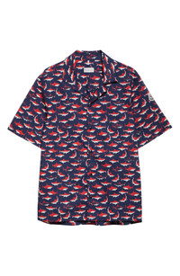 Swimming sharks prowl on a cotton camp shirt saturated in the label's signature tricolor palette. Front snap closure Notched collar Elbow-length sleeves 100% cotton Dry clean Imported Designer Clothing