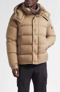 Moncler’s heritage of elevated outerwear shines in this instantly recognizable down jacket made from lightweight longue saison nylon and defined by precision channel quilting. The snap-flap sleeve pocket adds utility with a luxe edge, while the removable hood keeps you ready for the unexpected. Two-way front-zip closure with snap storm placket Stand collar; removable drawcord-toggle hood Adjustable snap cuffs Front zip pockets; on-sleeve snap-flap patch pocket Lined, with 90% down, 10% feather fill 100% nylon Hand wash, dry flat Made in Armenia Designer Clothing