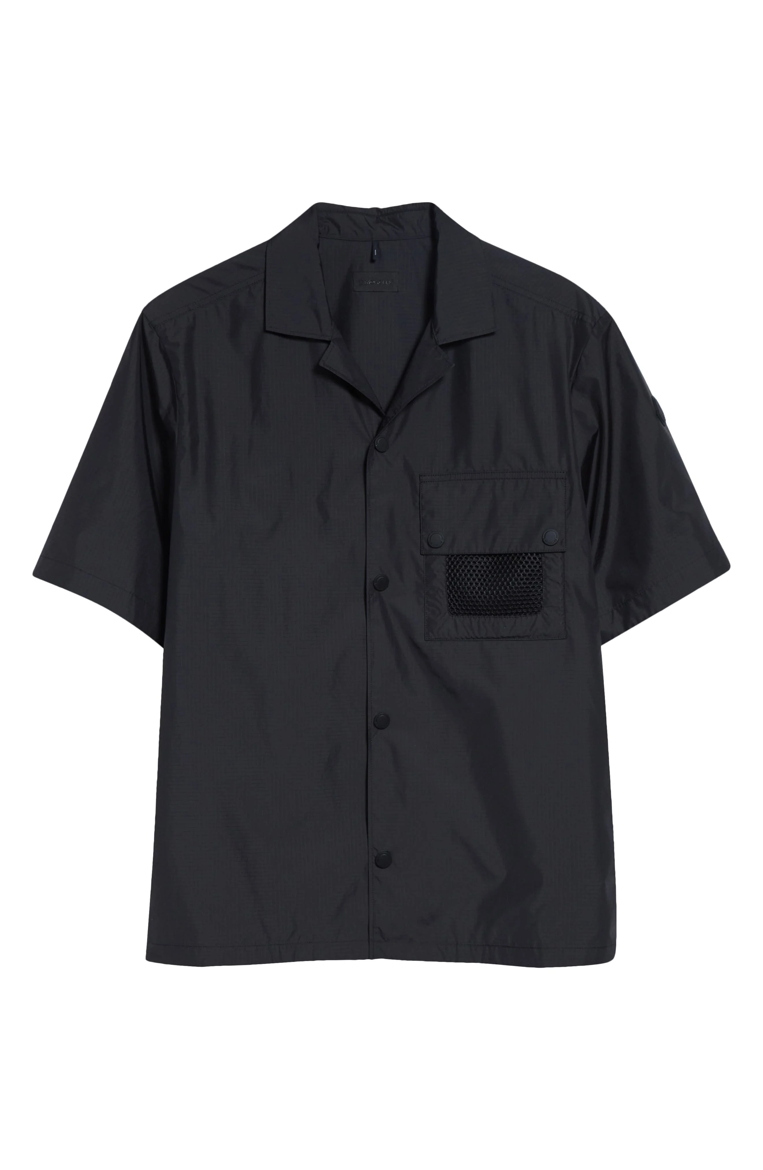 Moncler Mesh Pocket Short Sleeve Ripstop Snap Shirt in Black at Nordstrom