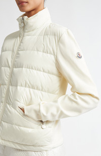 Moncler Mixed Media Down Puffer Jacket in Silk White at Nordstrom