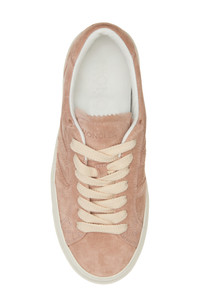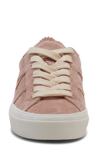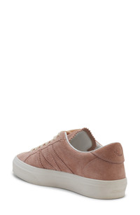 Decorative pinking traces the streamlined silhouette of a low-profile sneaker crafted from velvety suede in a dusty-rose hue. Lace-up style Leather upper and lining/synthetic sole Imported Designer Shoes