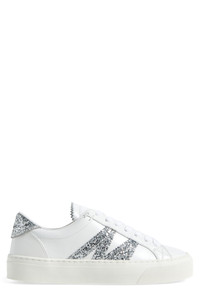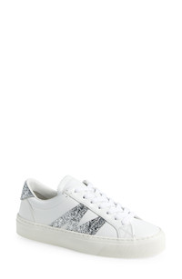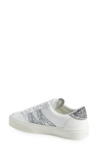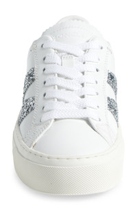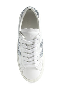 This low-profile leather sneaker is grounded by honeycomb tread and is given a flash of shimmer with glittery accents. Lace-up style Leather and textile upper and lining/synthetic sole Made in Italy Designer Shoes