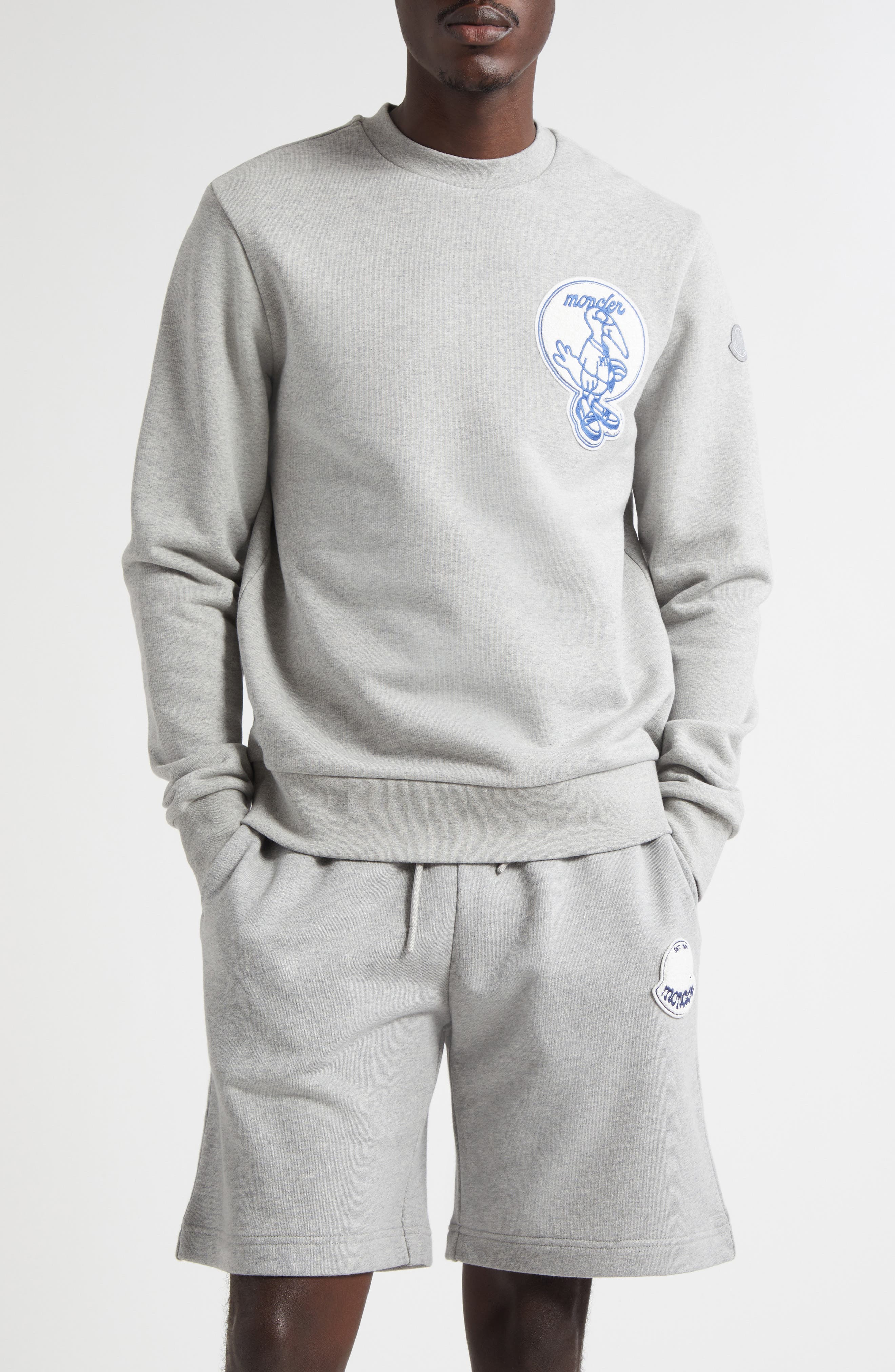 Moncler Monduck Mascot Patch Sweatshirt in Extra Light Gray Melange at Nordstrom